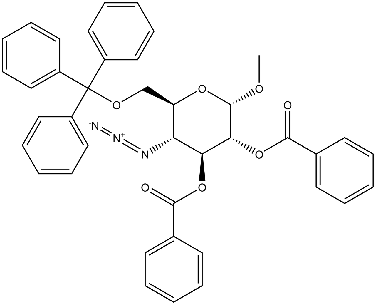 Click the button below to add the Methyl 4-azido-2,3-di-O-benzoyl-4-deoxy-6-O-trityl-a-D-glucopyranoside 1 g to your wish list.